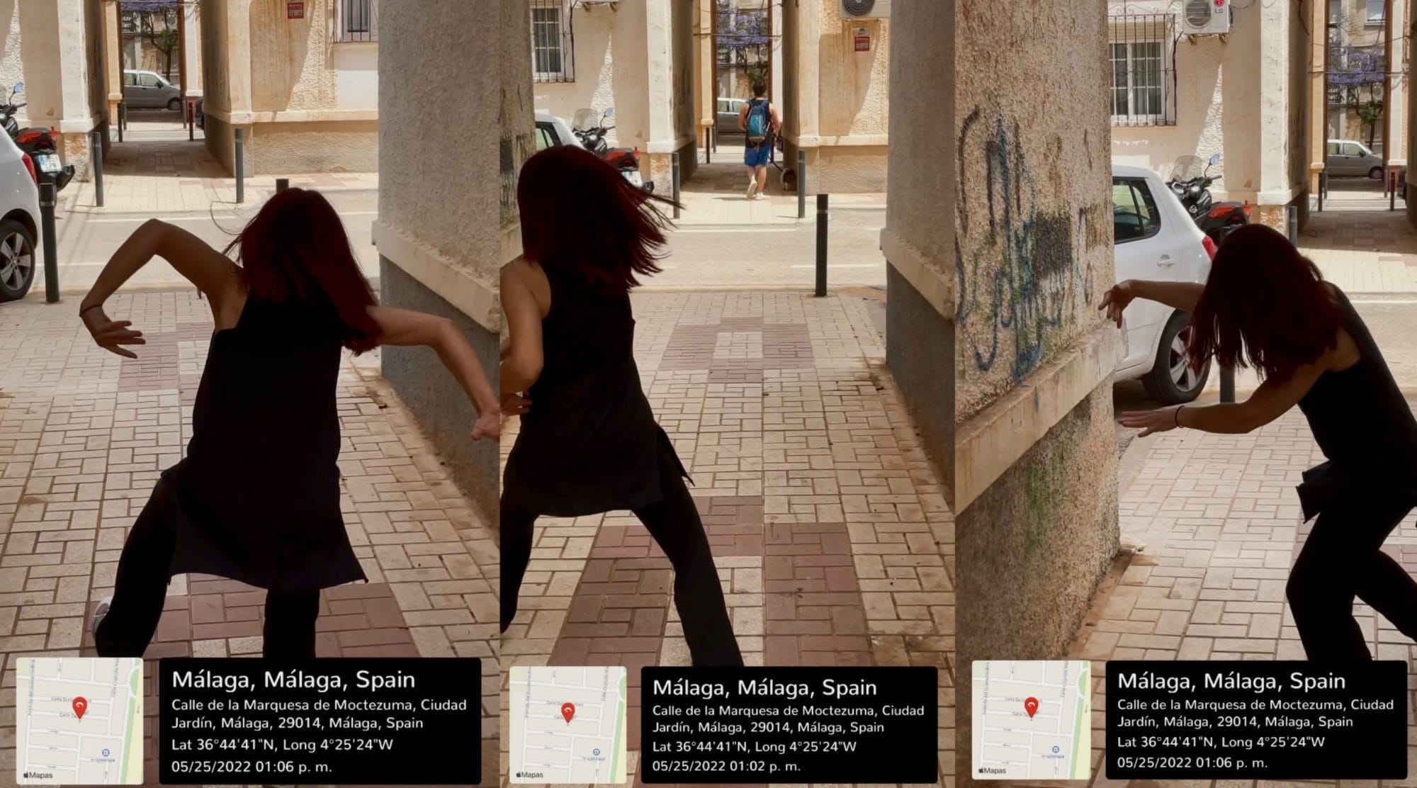 El paisaje urbano se conforma actualmente a través de una serie de problemáticas que en ciudades como Málaga tienen que ver con la gentrificación y la turistificación, que lo modelan. En la obra se propone una forma de vivir la ciudad, de experimentar su espacialidad a través de la danza. A modo de deriva, presenta un recorrido y una exploración por varios distritos de Málaga, utilizando técnicas como la pantalla partida, la geolocalización de los dispositivos móviles y el travelling de seguimiento.