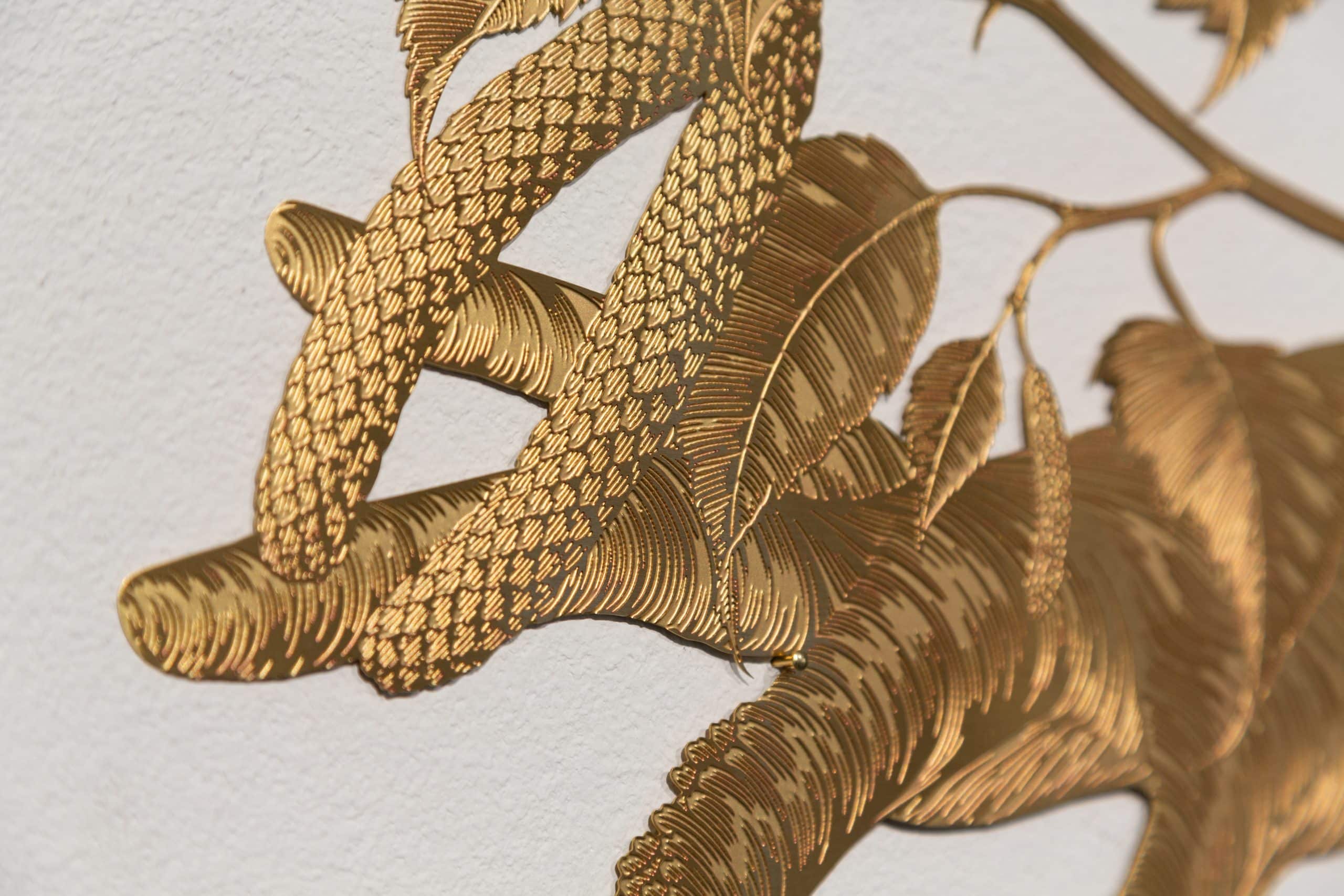 A duality is also present in the series Envidias. The synergies between the human being and their surroundings is re-created using lacquered brass to show four examples of nature (the zinnia, the goji berry, a walnut branch and a birch branch), presenting us with four unique and parallel dialogues. In this series the gentle gesture of a hand reaching for the branch or flower remind us of our fleeting and fragile relationship with our environment.