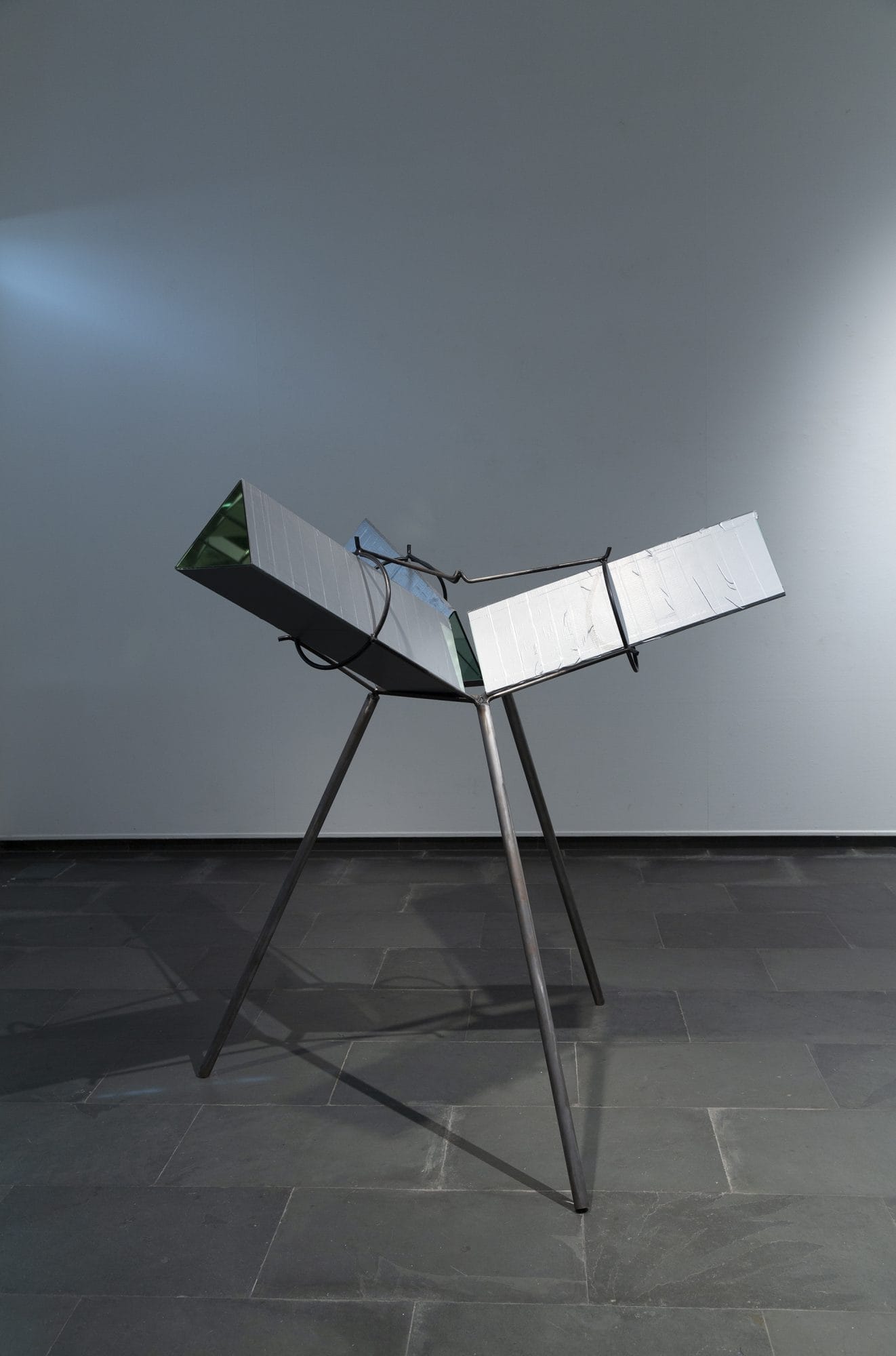 The exhibition is, furthermore, a reflexion of the latest developments in the artist’s work as an exploration of the interchangeable mobility of the gaze. If for Merleau-Ponty the eye creates reality, [3] García Méndez endows it with a constructive capacity. When the eye alights on the sculpture it reproduces the cognivity of the artist on the retinas of the gazers, running over the materials and connecting the plasticity with the abridged titles.